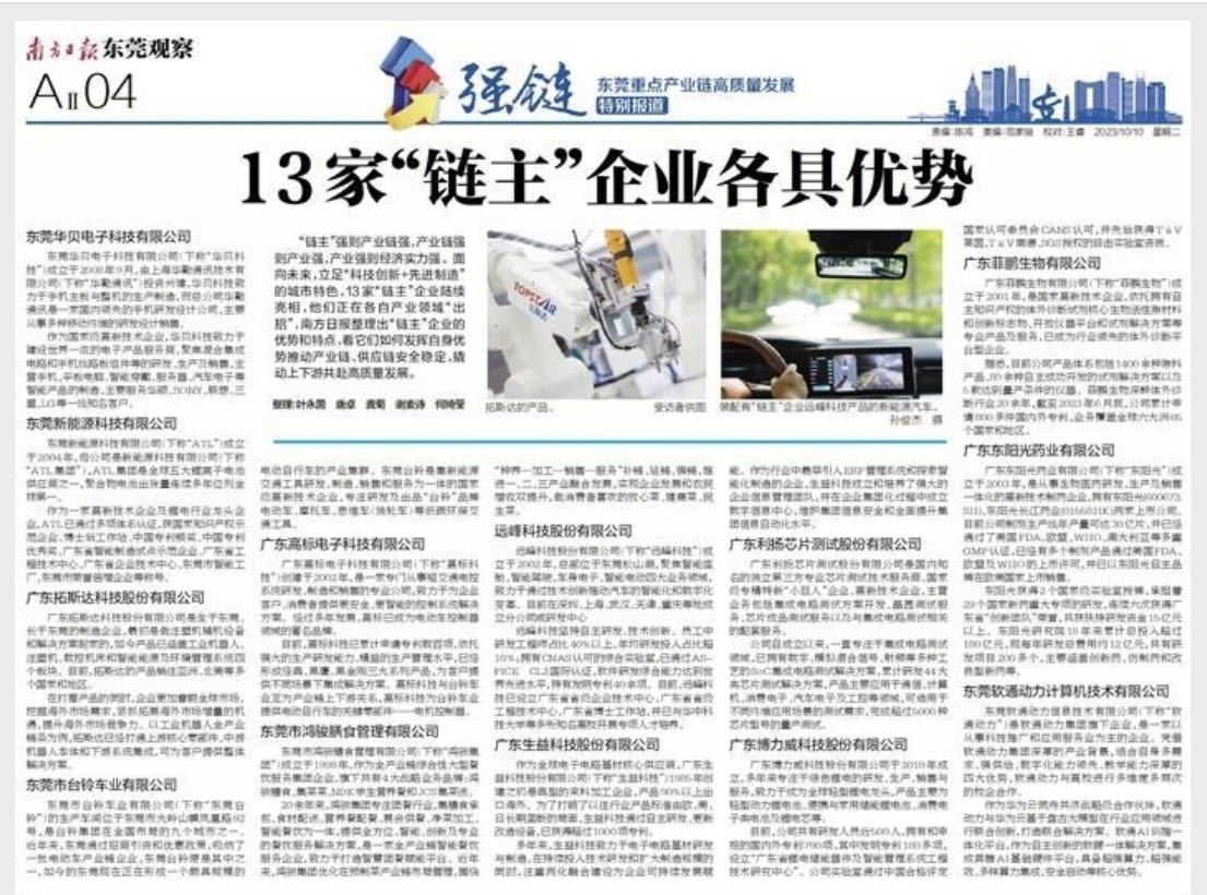 各具优势!东莞13家“链主”企业的优势特点看这里
