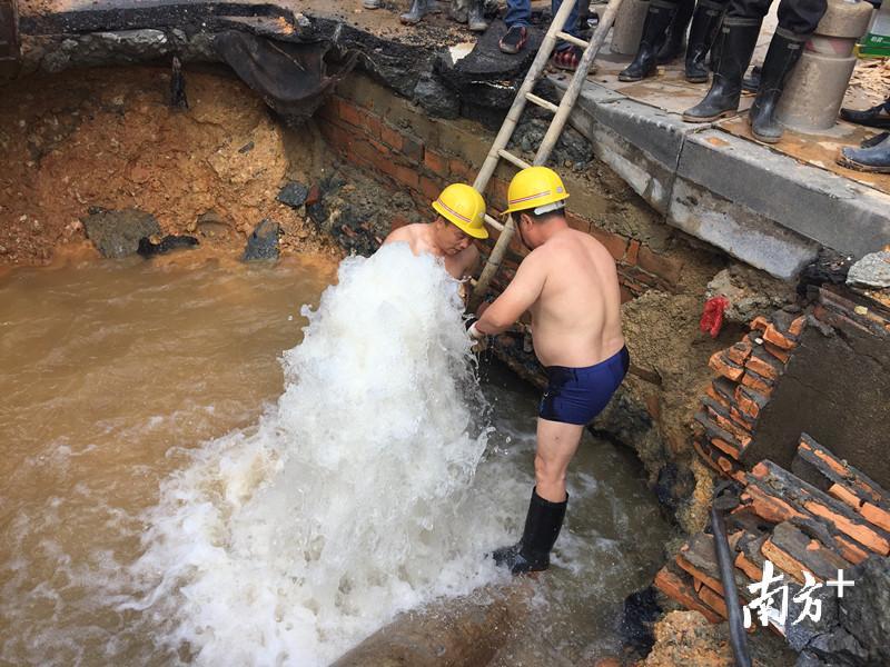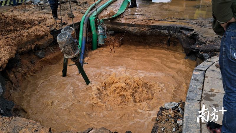 据介绍,在昨晚1:30左右,位于长安镇宵边路段污水工程施工队在施工过程中,挖断了位于该路段的一段供水管,该供水管为1.6米口径,抢修难度较大。