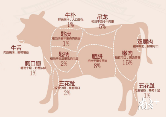 据了解,同部位的牛肉都有不同的切法,牛肉切得好不好会直接影响口感,切得不好牛肉难以咬断或口感粗糙。