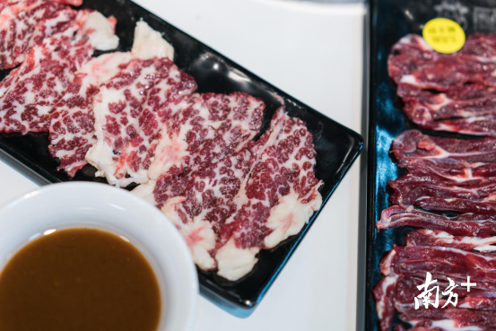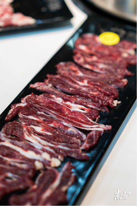 不同的牛肉,有不同的下锅时间。有的是涮8秒,有的是20秒。为了让客人能够吃到最好的口感,店里在摆放每盆牛肉的时候,都会在上面加上标签。
