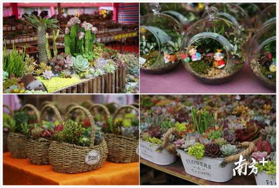 近几年,憨态可掬的多肉植物成为了新春花市的新宠。从2015年开始,东莞花市多了很多摆卖多肉植物的花档,店主告诉记者,多株迷你盆或迷你篮最受年轻人欢迎,摆在家里或者办公室都赏心悦目。也有很多老玩家来淘宝,他们喜欢单株大盆的。带着一对人偶的玻璃盆栽也很热门。