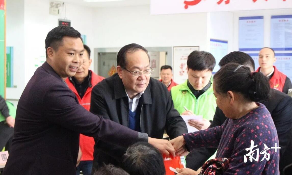 在赤坎村社区服务中心,该村的百位70周岁以上老人收到了一份特别的新年礼物,由石排镇委书记刘学聪、石排慈善会会长王志光带领的慰问组来到这里,为老人家送上了米、油、糖果等贺年慰问礼品。