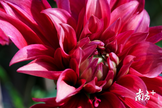 热烈如大丽花,正是大红色的代表。有趣的是,大红、火红、炎、赤这四种颜色名字相似、意义相似,但在色谱上却是不同颜色。其中,大红指正红色,即三原色中的红,是传统的中国红,又称绛色。而赤本义为火的颜色,即红色,目测看起来却比大红更深。