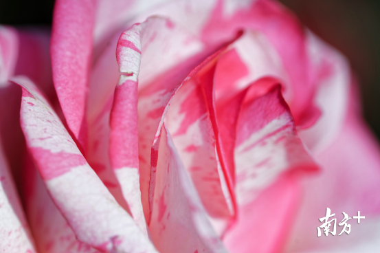 时装中,正红色搭配玫红色本是大忌,但在下面这张照片中,光影把这朵只有一种颜色的玫瑰“变”成了红色和玫红色,两种高饱和度颜色碰撞一起,像是停顿的一帧电影,带出强烈的感情色彩,不禁让人感叹大自然在用色上的绝妙。
