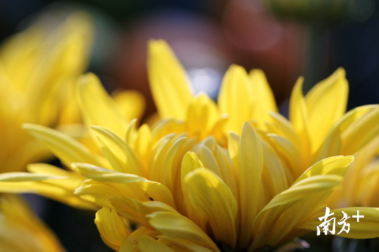 在古代,黄色是尊严崇高的颜色,帝王都穿黄袍,皇宫用金黄色的琉璃瓦。“冲天香阵透长安,满城尽带黄金甲”,而眼前这朵迎着阳光的菊花,从鹅黄、鸭黄到秋香色、秋色,黄得层次分明,开得欢天喜地。