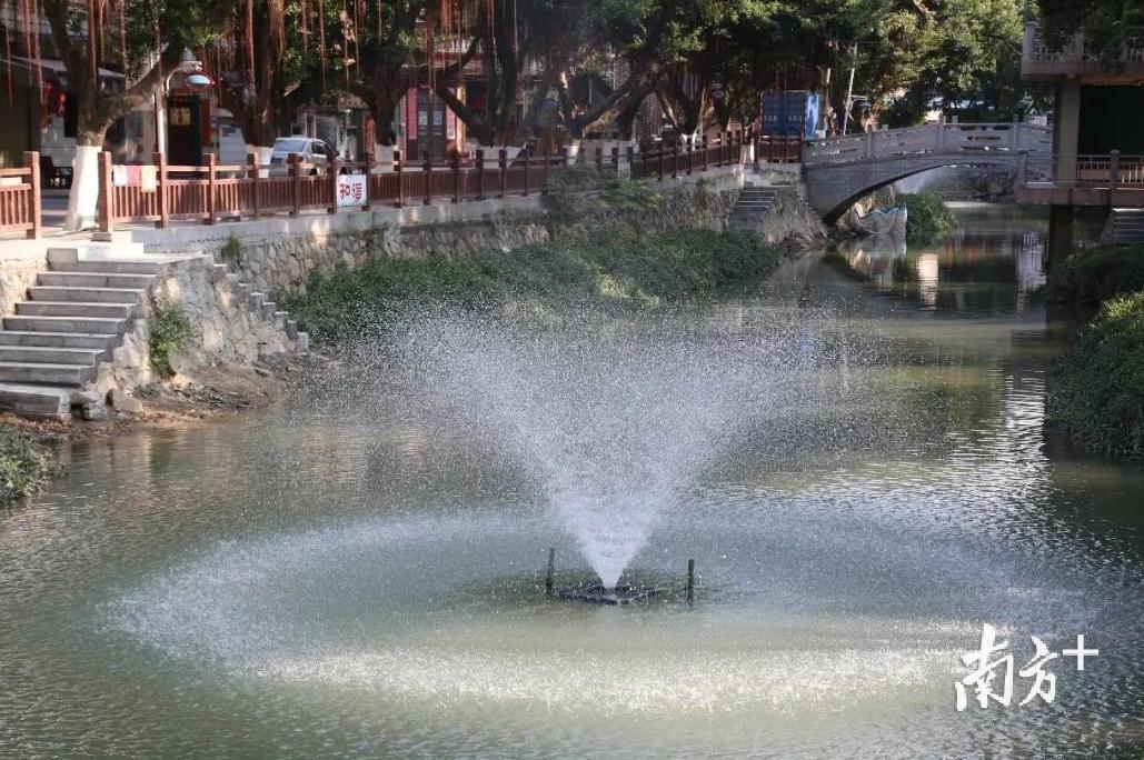 麻涌安装这些喷泉可不是为了美观。原来,这是麻涌麻一涌河道原位生态修复工程,在河道中安装喷头,通过ISSA PGPR原位生态修复技术,改善河涌水质。这一“黑科技”的使用,极大改善了麻一涌的水体质量。
