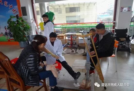 3月14至15日,清远市残疾人辅具中心工作人员到英德市残疾人康复中心为18名肢体残疾人进行假肢取模适配,其中大腿9例、小腿7例、上肢2例。