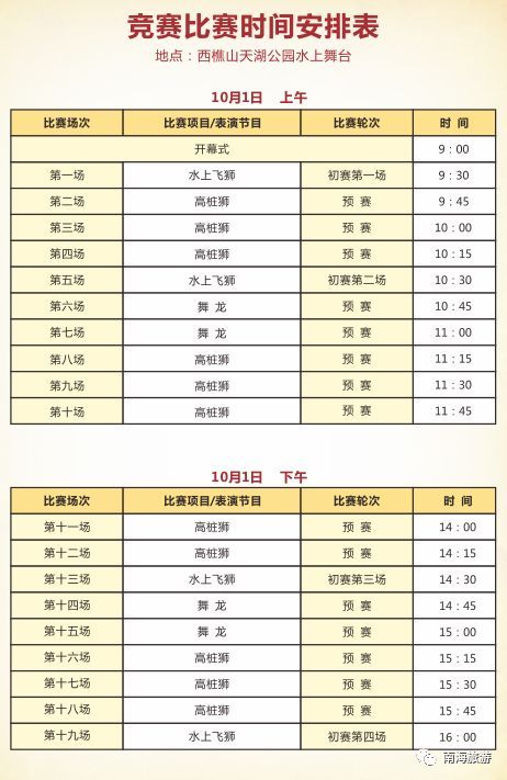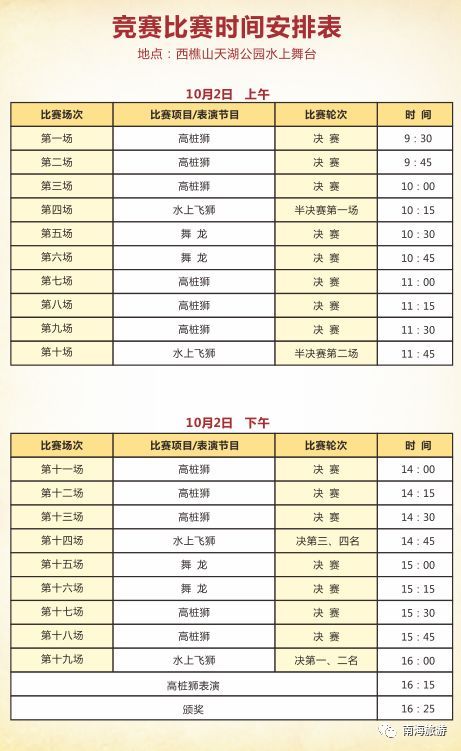 奉上10月1日至2日全赛程,看21路狮王一施绝技,现在马上就出发吧!