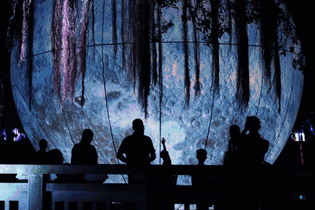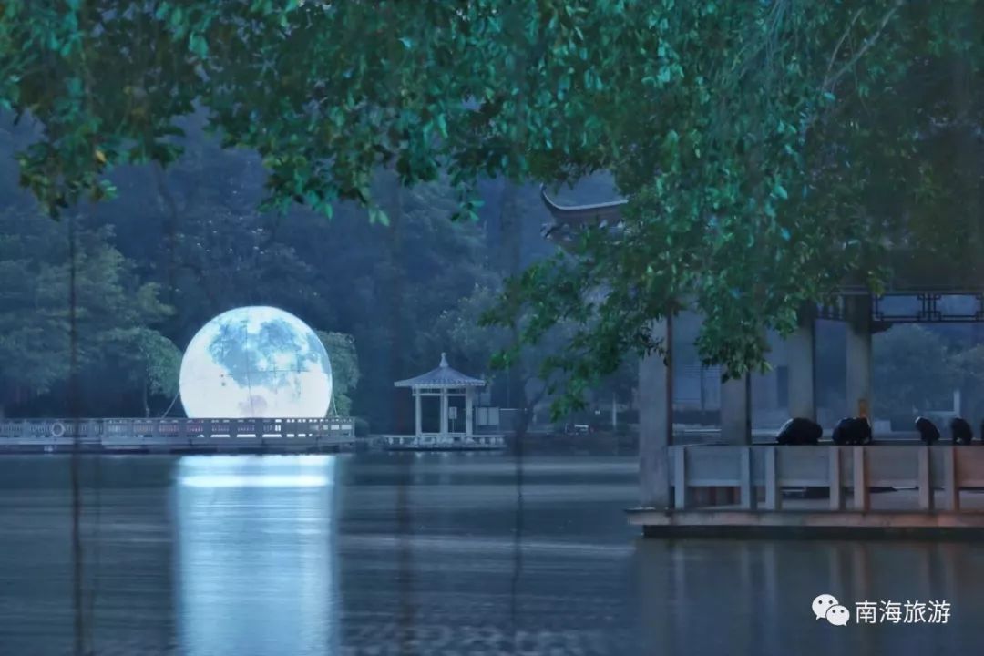 38米激光水幕、“超级月亮”、发光兔群、钢琴等……点亮西樵山的奇妙夜。