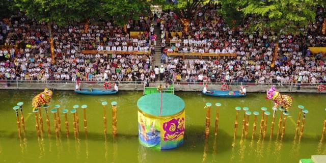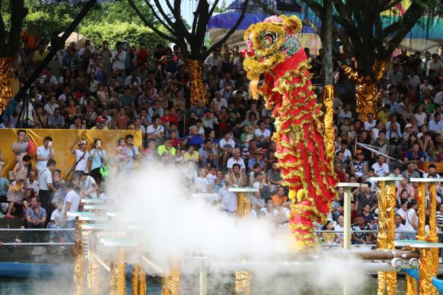 今年除了惊险刺激的高桩狮和水上飞狮,还有精湛舞姿的舞龙队伍。
