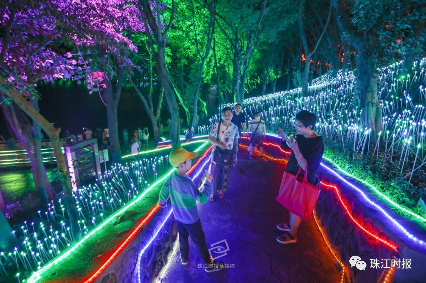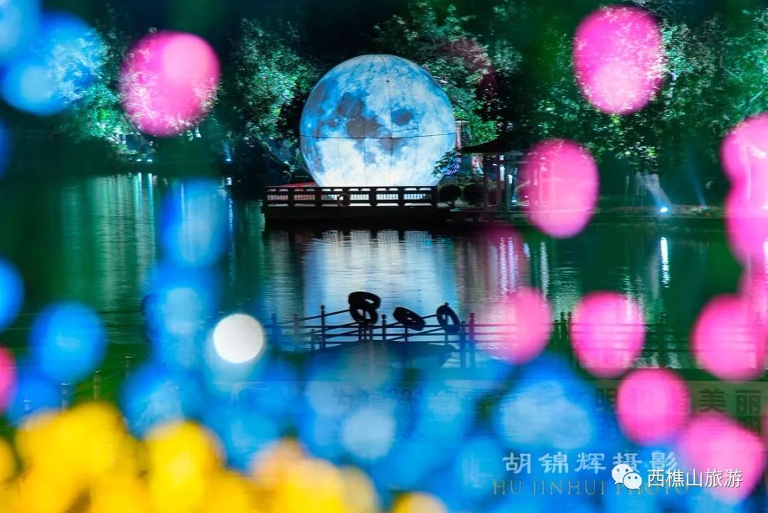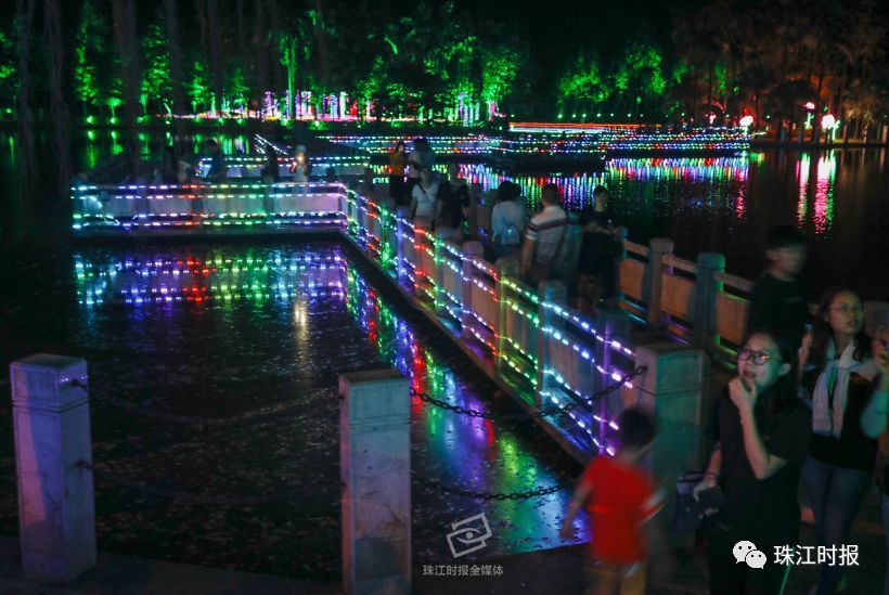 国庆期间上演的天湖璀璨灯光夜