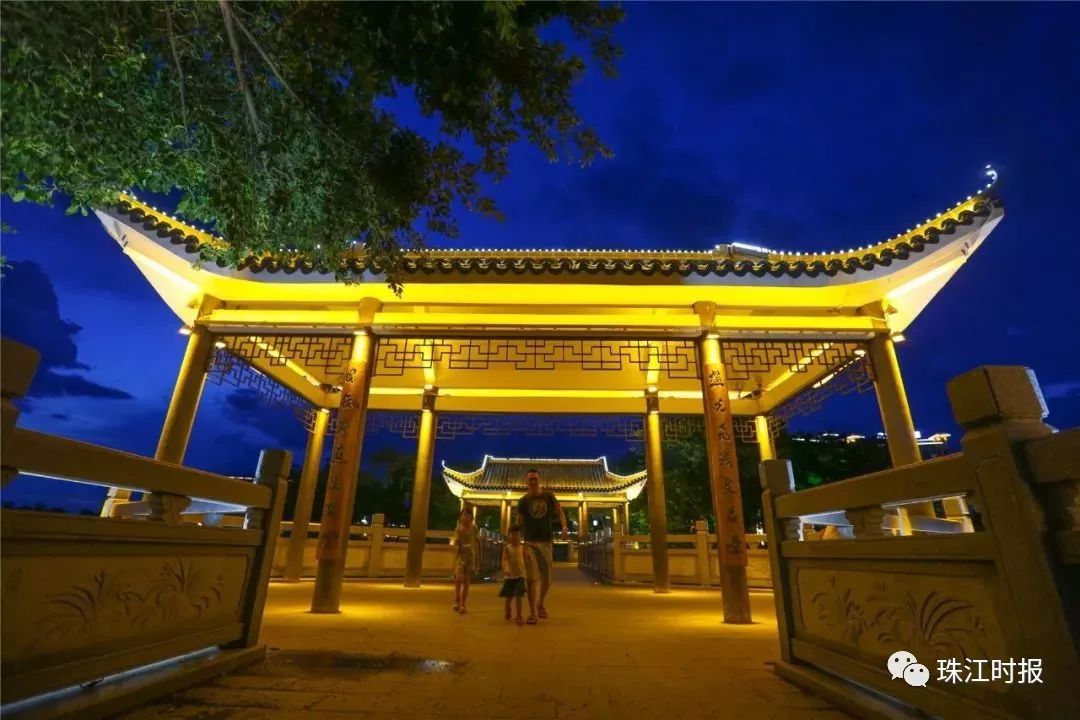 步行至樵园公园,看岭南仿古式的建筑,微风吹佛,灯光相映,颇感舒适,老铁约吗?!
