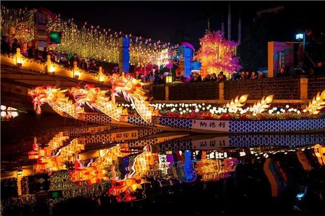 白天的水上花市热闹喜庆,入夜后的水上花市则拥有了另一种魅力,灯光明暗中的清丽脱俗,更是让你惊艳万分!