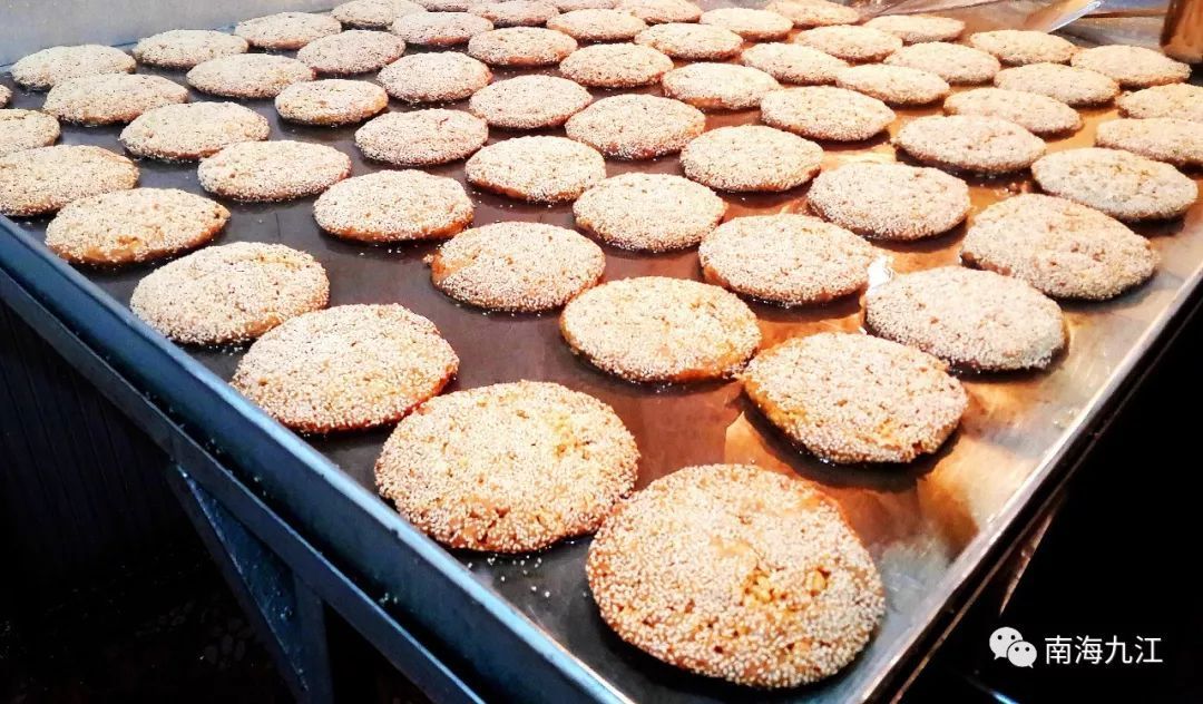 煎堆碌碌,金银满屋!与传统的广式煎堆不同,南海有着全国唯一扁煎堆——九江煎堆。这种全国唯一的扁煎堆已传承上百年,但制作、用料始终用心、讲究,已经成为了佛山乃至海内外友人的特色过年食品和手信。