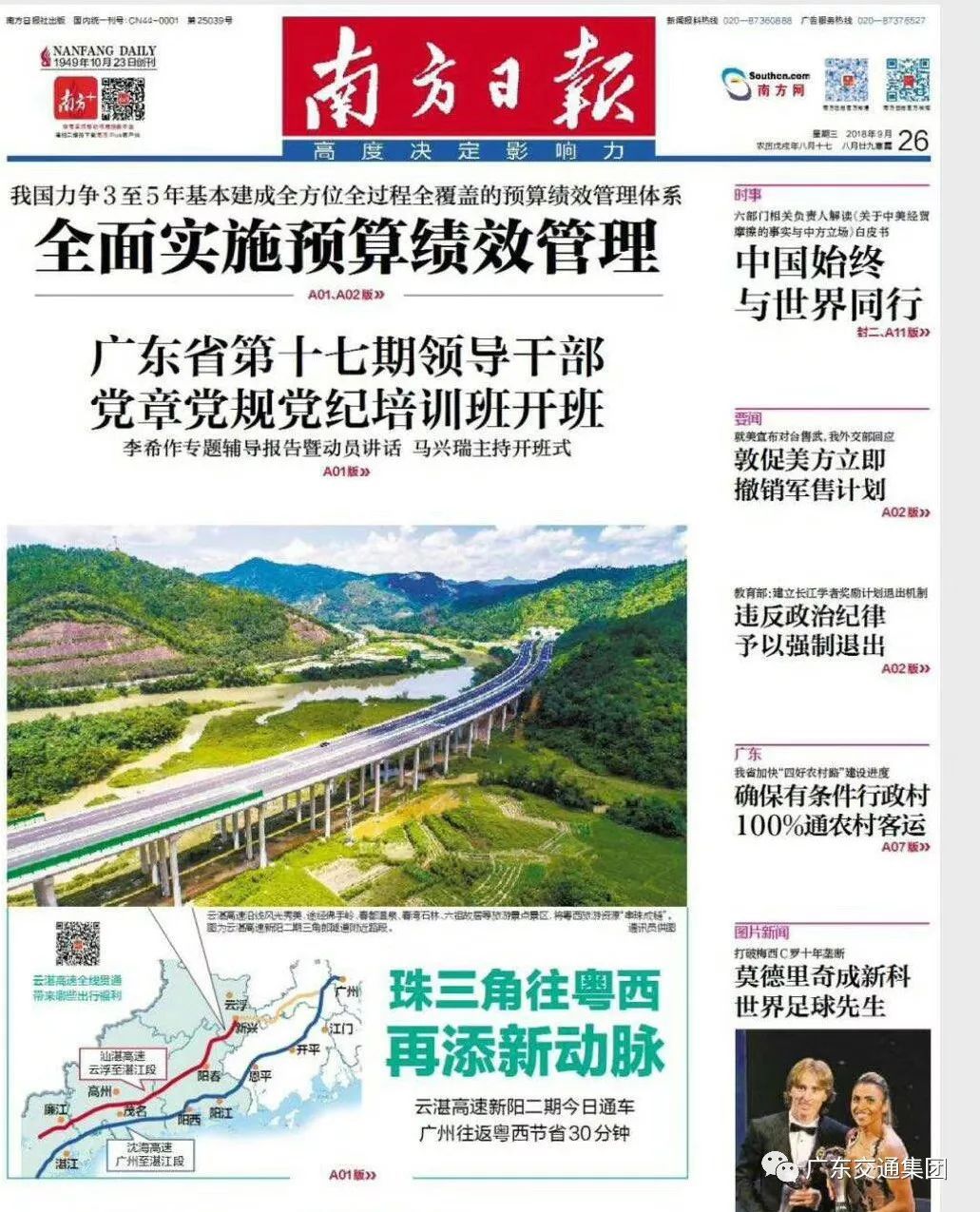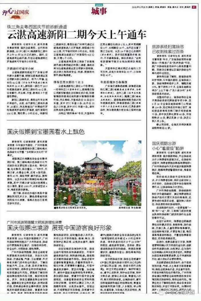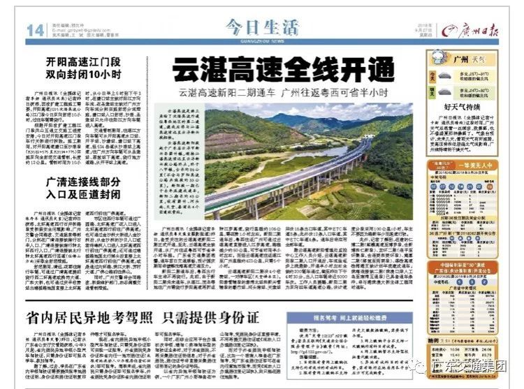 9月26日上午11点28分,备受关注的云湛高速新阳二期正式开通。广东省交通集团透露,通车首日交通顺畅,预计国庆期间将缓解沈海高速交通压力。广东卫视、广州电视台、南方日报、南方都市报、新快报、信息时报等多家主流媒体作现场报道。