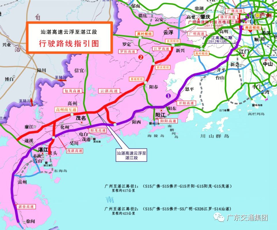 此次具有沈海高速复线功能的云湛高速全线贯通后,珠三角前往粤西将新增一条大通道。珠三角往返粤西的车主可选择广明高速、江罗高速再接云湛高速公路,车主将不再绕行,可减少里程约60公里,节约半小时车程。