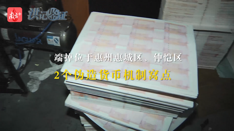 追踪数月后,9月17日凌晨,广东省公安厅指挥调度惠州、汕尾、深圳、广州、汕头、揭阳6地警方同时行动,一共捣毁特大伪造货币机制窝点两个、查获印刷机四台,以及假币胶版和一大批印刷假币的原材料,全链条抓获主犯、技术员、买家等主要犯罪嫌疑人29名,缴获2005年版100元面值假币2.1亿元。