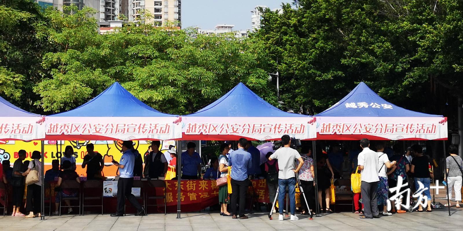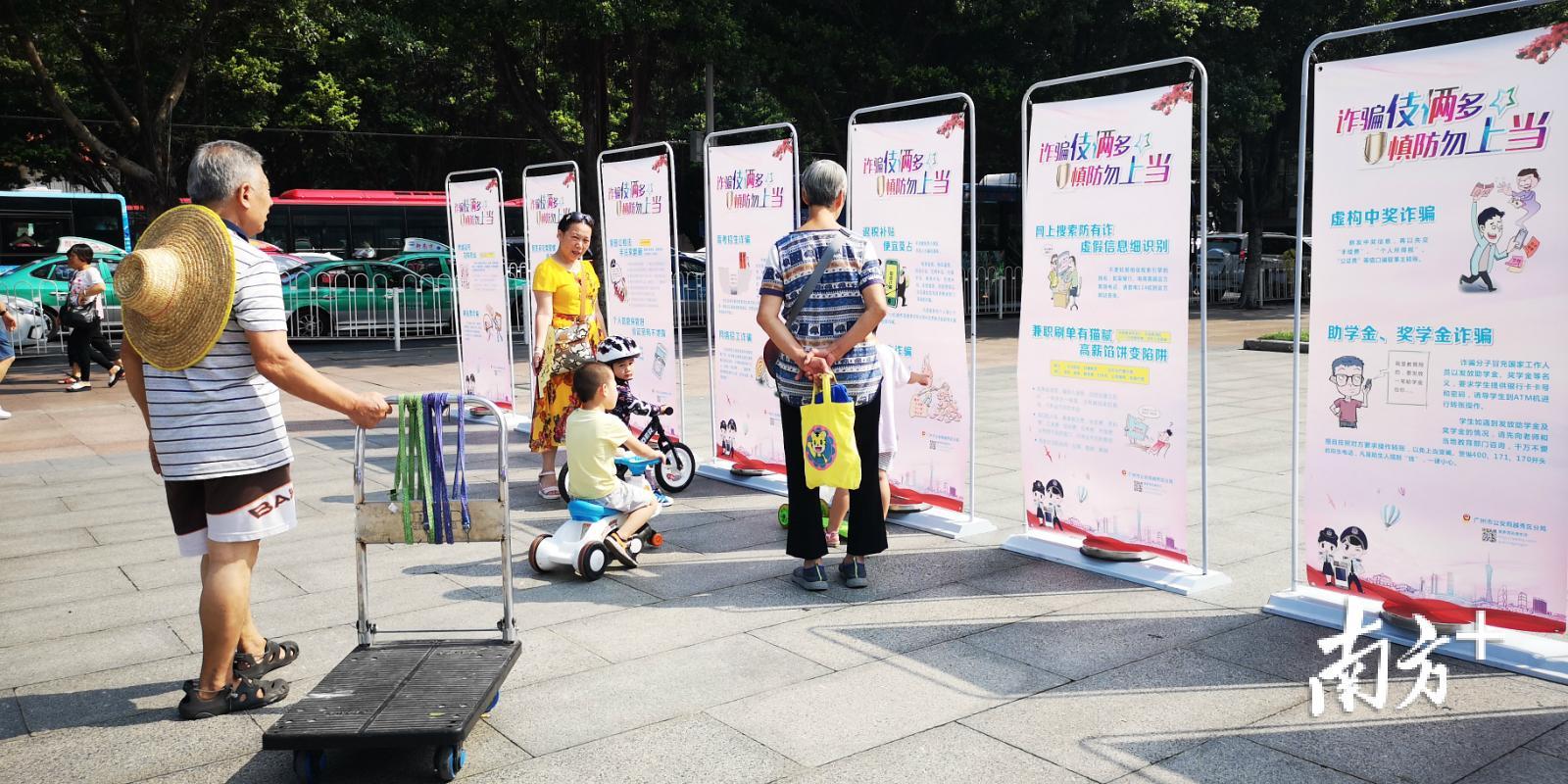 活动现场,越秀警方通过播放案例展示、民警现场开讲等形式与现场群众互动,深入浅出普及揭露网络电信诈骗犯罪手法,提高群众识别防范电信诈骗意识伎俩的防范意识。