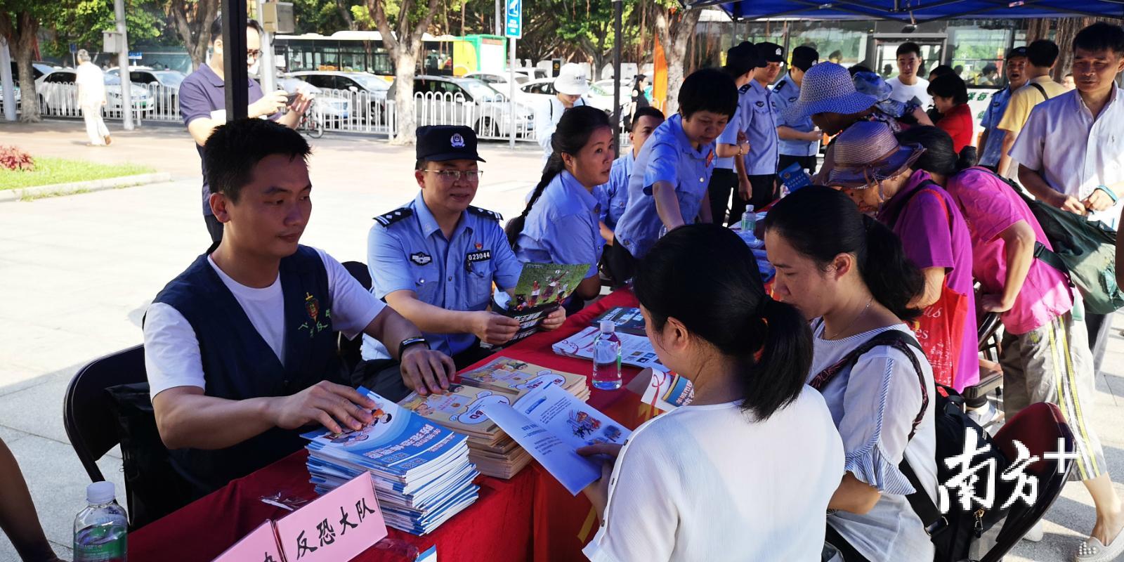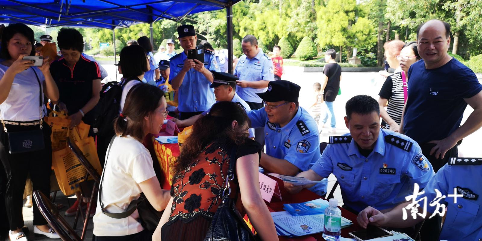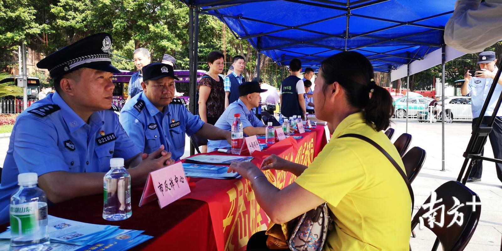 现场除了防诈骗宣传咨询,还开设了扫黑除恶、防恐怖袭击安全、禁毒知识普及、食品药品辨别真假、消防安全防范等咨询台,民警与群众亲密互动,提高他们的防范意识。