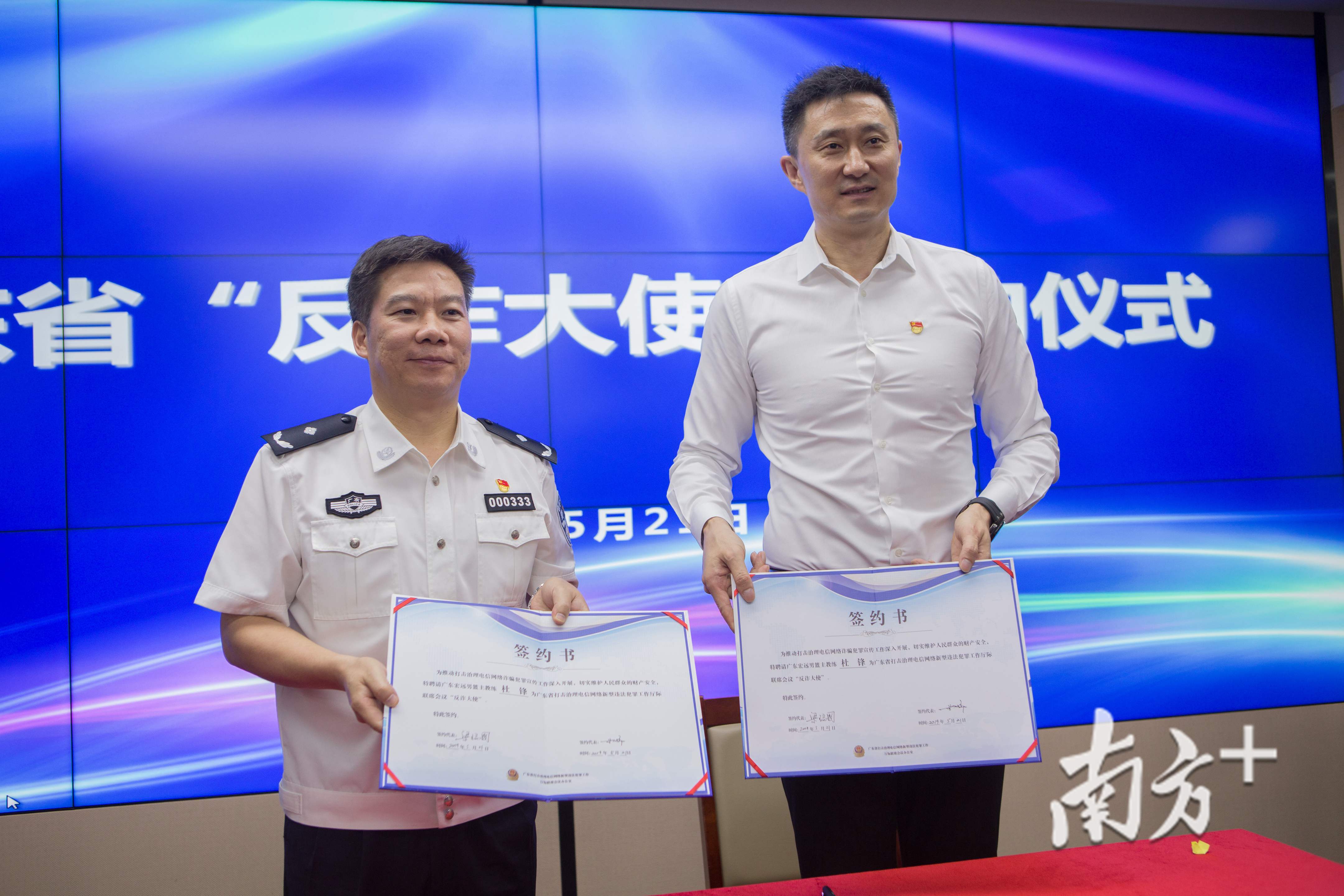 笔者从省公安厅获悉,5月21日,广东省“反诈大使”聘任签约仪式在省公安厅新型犯罪研究中心举行。省公安厅刑侦局局长梁瑞国代表省打击治理电信网络新型违法犯罪工作厅际联席会议办公室向杜锋颁发聘书,并介绍广东省打击电信网络诈骗犯罪情况。