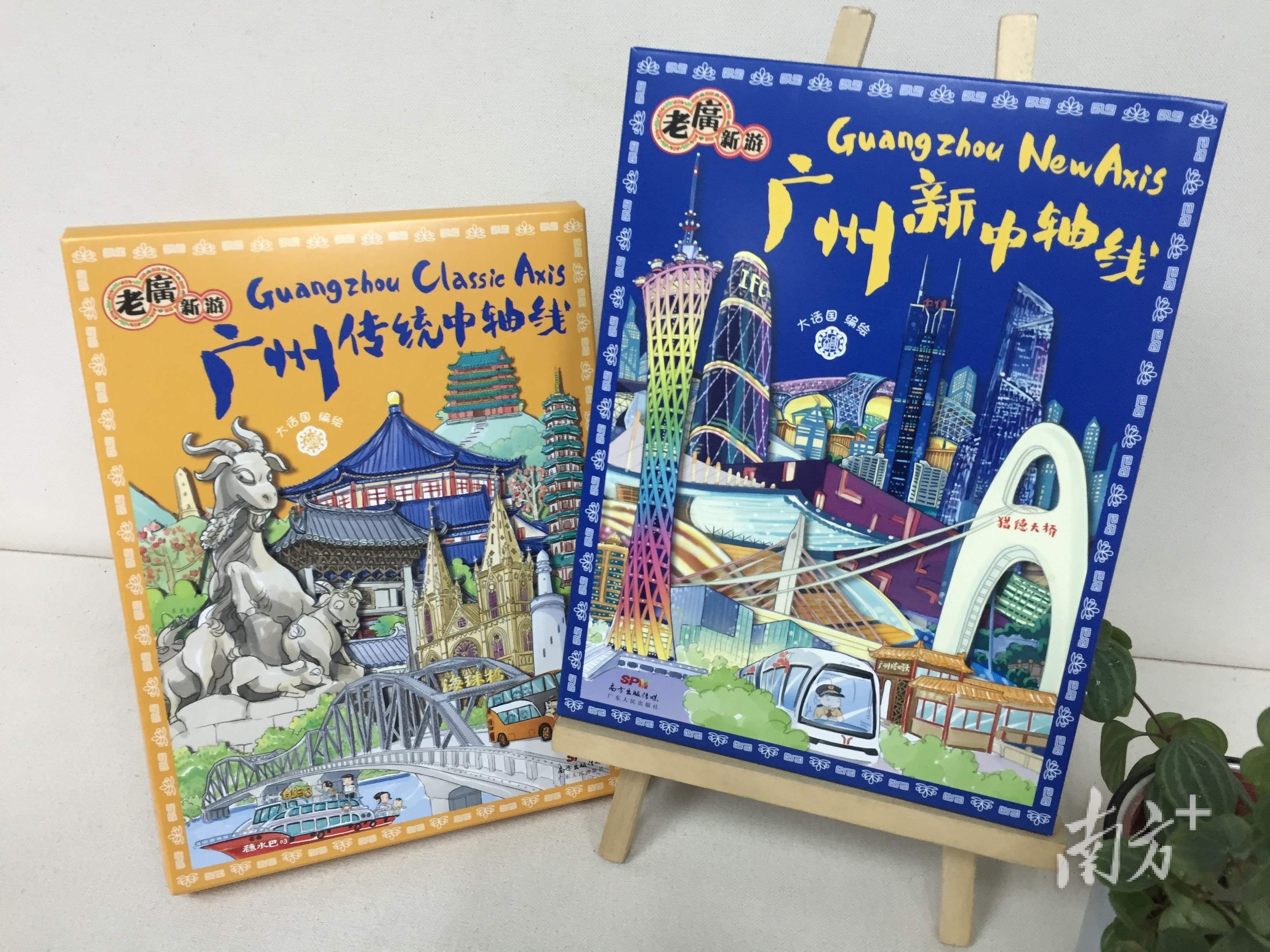 王大欣“大话国”创作团队推出的《广州传统中轴线》《广州新中轴线》明信片。