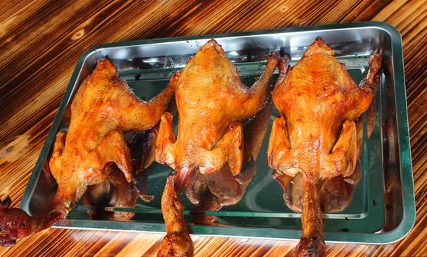 新鲜出炉的烧鹅,油光耀眼,色如红枣,香气四溢,皮脆肉嫩,皮薄如绸而不起皱,香浓的肉汁沿着肉身流下,让人垂涎不已。