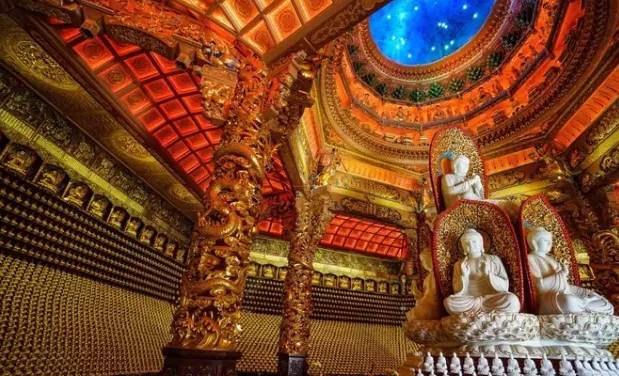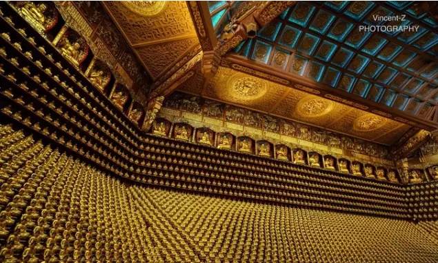 ▲ 宝林寺最高处的万佛殿,里面摆有上万尊金漆佛像。