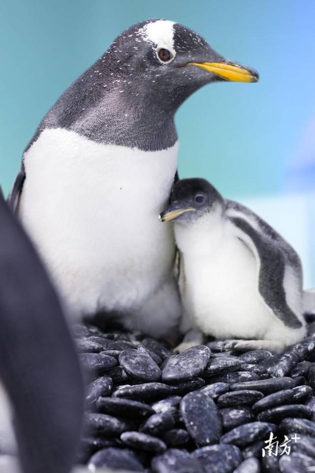 一只身披灰色绒羽,走路摇摆的南极企鹅宝宝,跟在成年企鹅妈妈的身后,模仿着成年企鹅的姿态,一扭一扭地走出繁育槽……近日,广州正佳极地海洋世界的唯一南极企鹅种群企鹅宝宝迎来满月。