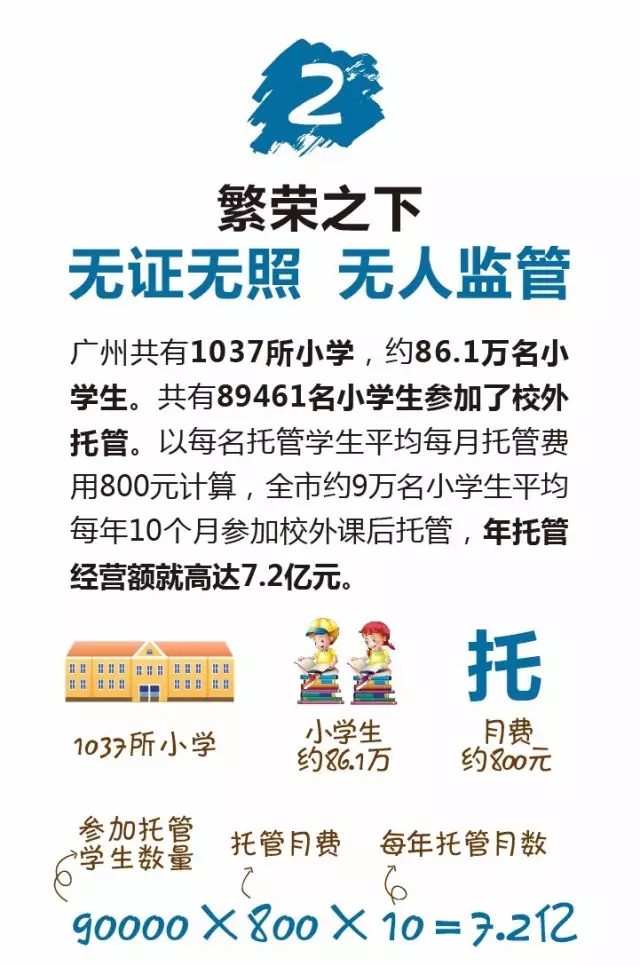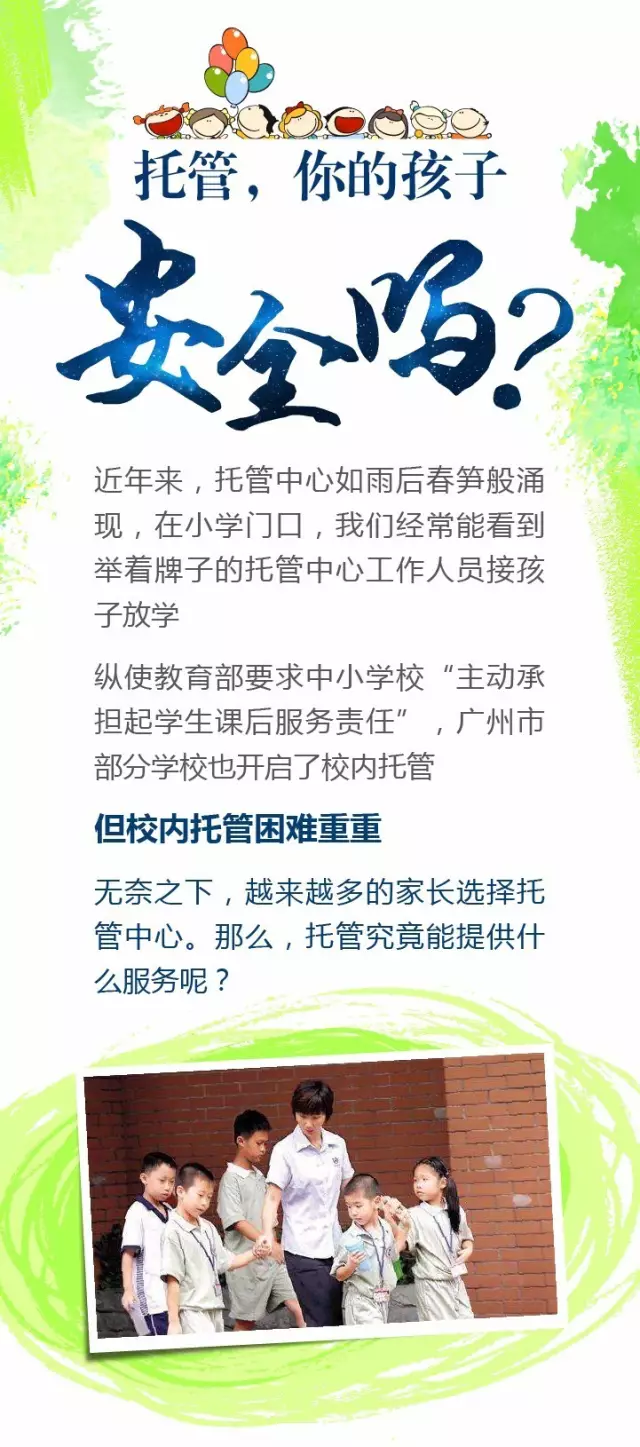 然而,据了解天河与越秀等区在校内课后托管的实施过程中也遇到了教师负担重,托管服务内容单一等难题,因此,校内托管工作要做好、做长久,还有不少问题亟待解决。因此,也出现了呼吁“引进第三方机构”的声音。广州第三方托管机构现状如何?安全吗?我们用一张图进行解读。