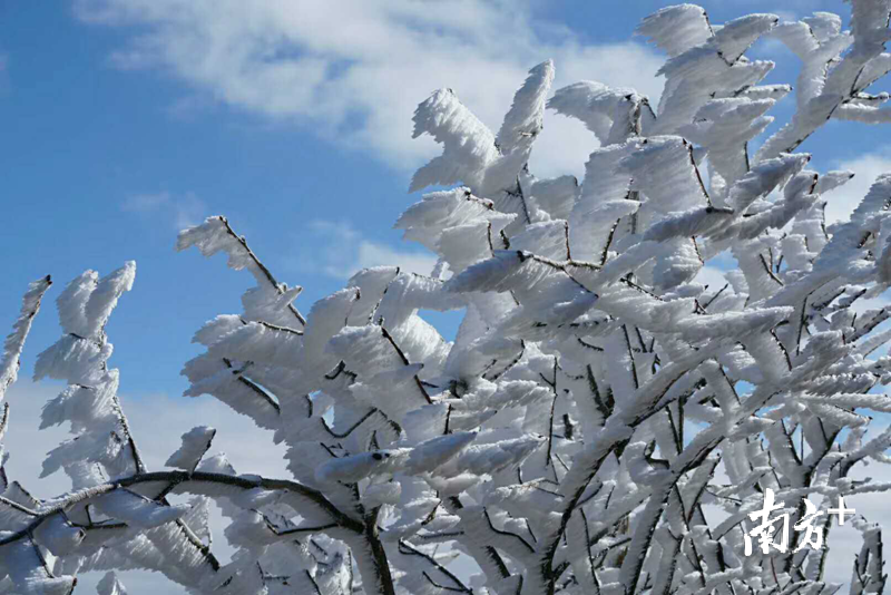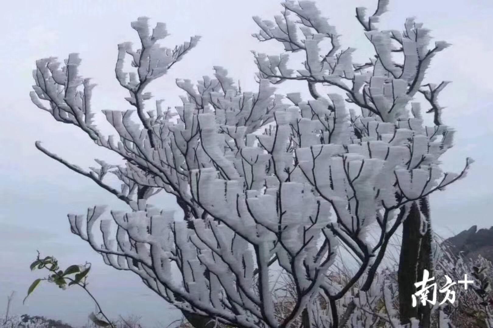 12月17日,受冷空气影响,地处乳源瑶族自治县境内的南岭国家森林公园,迎来入冬以来第一场壮观冰雪。南岭山顶,呈现银妆素裹、千里冰封的壮观景象。