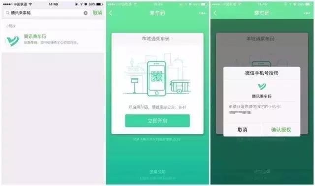 第一次使用时可通过微信小程序搜索“腾讯乘车码”,授权成功后即可扫码乘车。