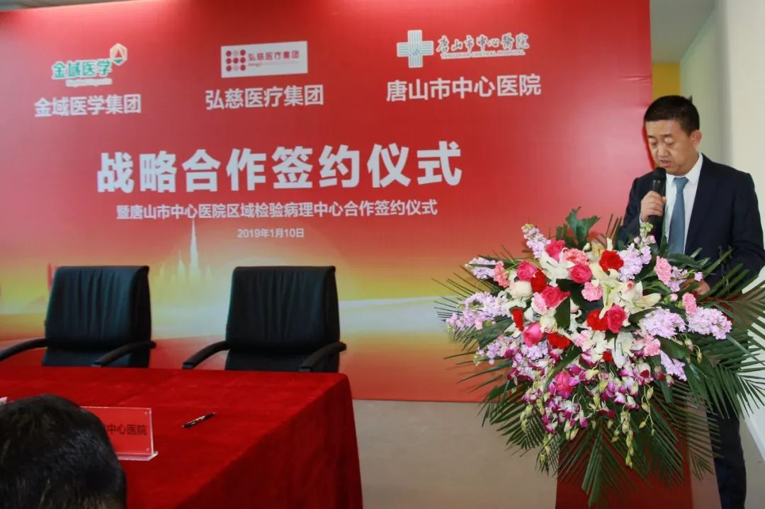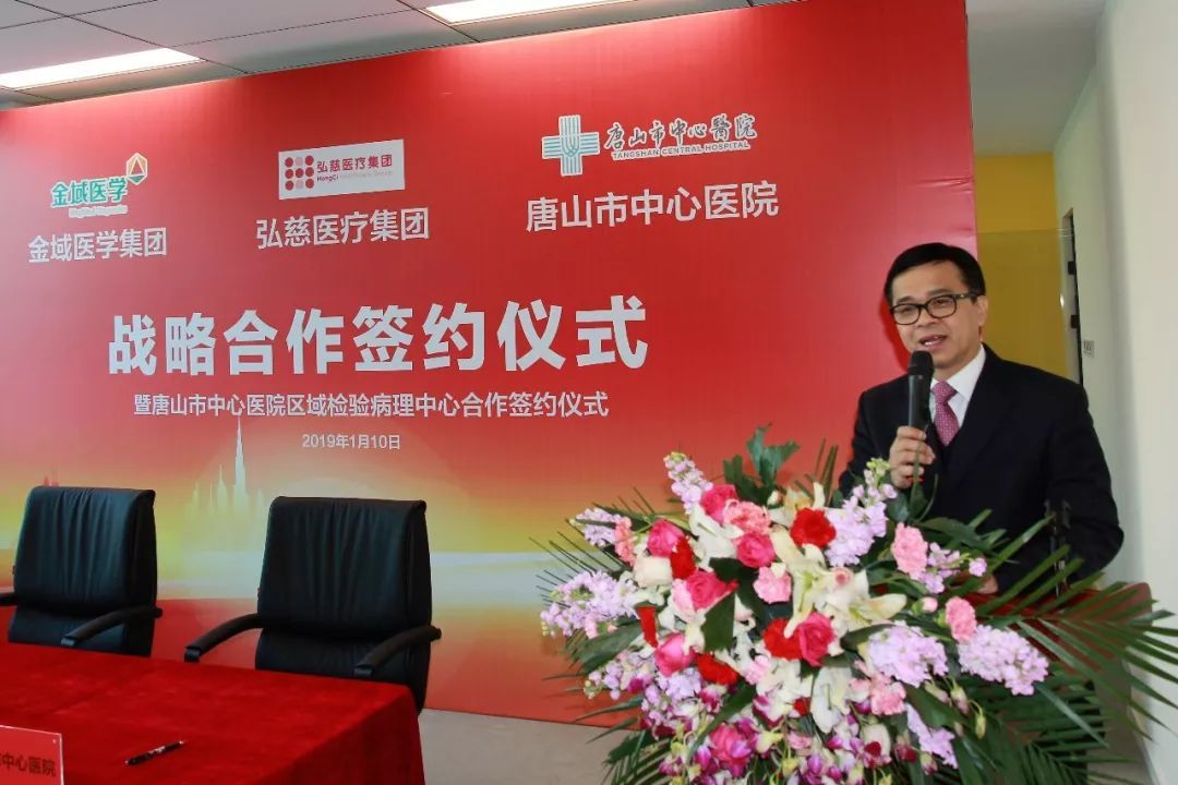 2019年1月10日,金域医学与弘慈医疗集团签署战略合作协议,天津金域与唐山市中心医院签署共建区域检验病理中心合作协议。唐山市中心医院是国内最大的医疗领域PPP项目。金域医学与弘慈医疗集团的战略合作,将以唐山市中心医院检验病理中心为起点,实现产业链互补、战略目标共赢,以高品质高标准的临床诊断服务,为百姓健康造福。