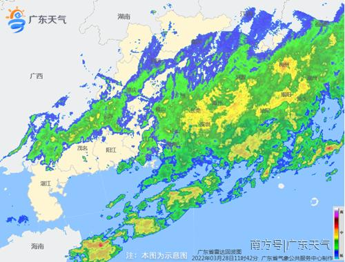 未来3天广东大部降水仍然频繁,雨雾天气日趋明显,气温逐日缓升,其中29日到30日,受高空槽和低层偏南到东南气流影响,粤西、珠三角、韶关、清远有大雨局部暴雨或大暴雨,并伴有雷电、6~8级短时大风、短时强降水等强对流天气。详情