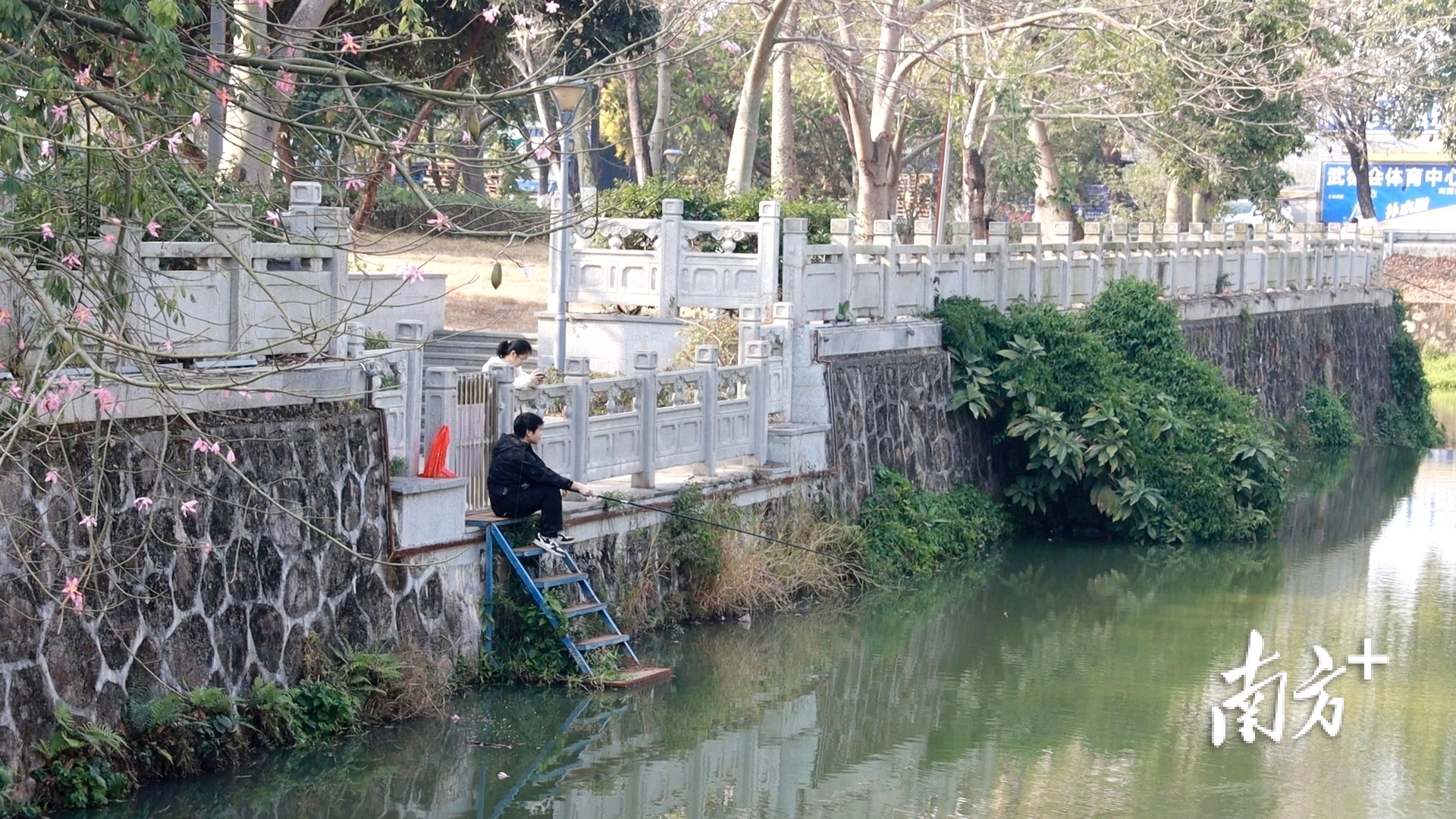 中山南朗大溪河水清岸绿,居民正在享受休闲时光。