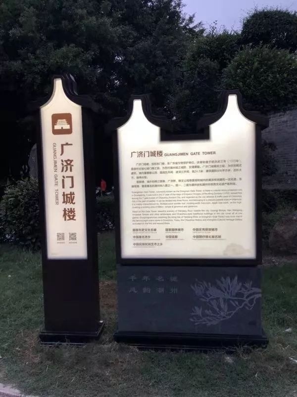 潮州古城区旅游导览、标识牌系统共分八大类,分别为全景图及游客须知、全景图、方向指示标识、景点到达及解说标识、服务设施标识、传统老店、公厕标识、旅游交通引导标识(车行),共约130块标识牌。