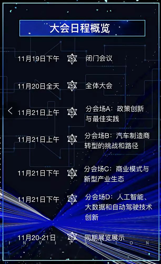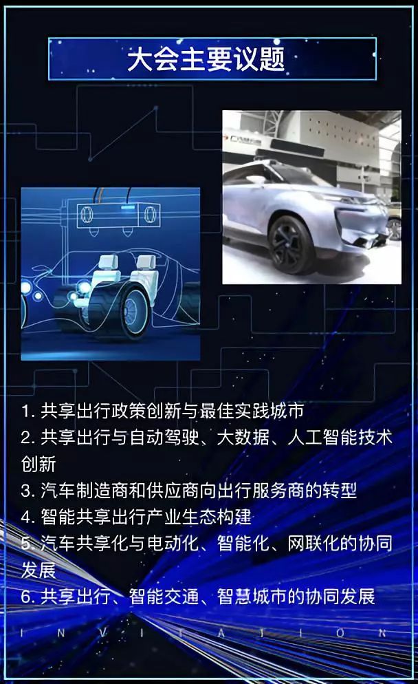 全体大会汇聚政府和产业界高端资源,旨在从战略宏观层面围绕智能共享出行开展深入交流,共谋未来出行发展新思路。届时:
