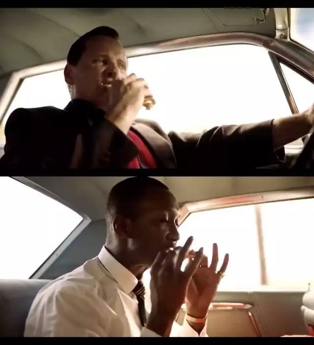 托尼一手握着方向盘,一手吃着被称为“黑人最爱的食品”炸鸡,可谢利却从未吃过。