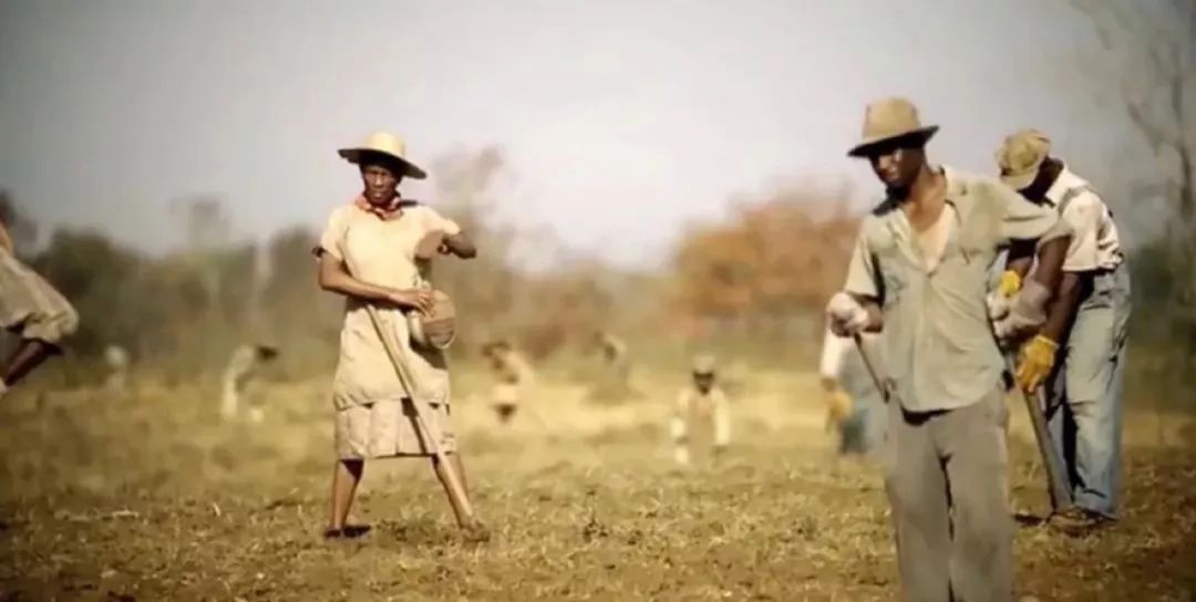 正在田地里干活的黑人们像谢利投来了异样的眼光。