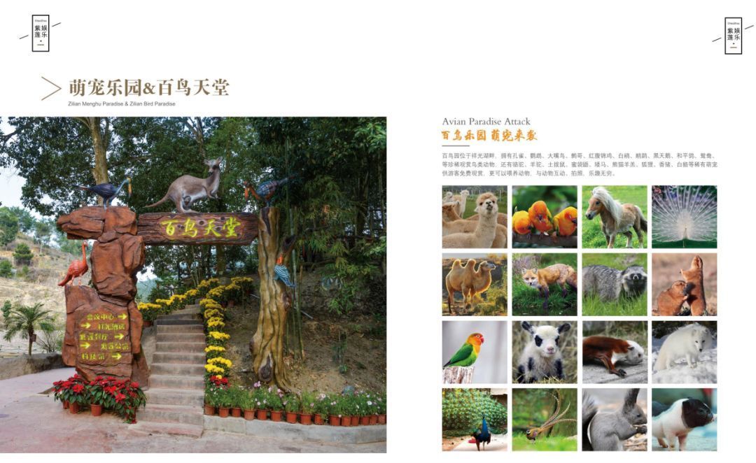 潮州紫莲野生动物园位于潮州市湘桥区紫莲山,共划分为七个不同的功能片区,总规划面积5678亩,分别为:野生动物园区、机动游乐园区、军事拓展主题区、农家乐主题区、动物酒店区、林涧酒店区、入口大门区,包含吃、住、娱、购、赏、文化教育、欢乐拓展等复合型旅游项目,将打造成为山乡旅游目的地,潮州旅游综合体。以“潮文化”为主题形象,发展农家乐、机动游乐项目、军事拓展科普基地、野生动物园等受捧热度高、持续回本强的旅游产品,成为带动潮州旅游发展的龙头。