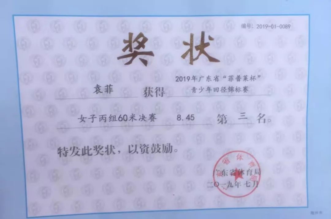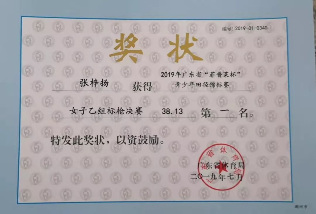 7月15日至19日,2019年广东省“菲普莱杯”青少年田径锦标赛在肇庆市体育中心体育场举行。我市田径队派出24名运动员参加比赛。经过5天的激烈角逐,我市共夺得12项前八名的好成绩,其中第一名1项,第三名3项, 5人8项运动成绩达到国家二级运动员等级标准,张梓阳和余宏涛二名运动员获得体育道德风尚奖,丙组团体总分第九名。