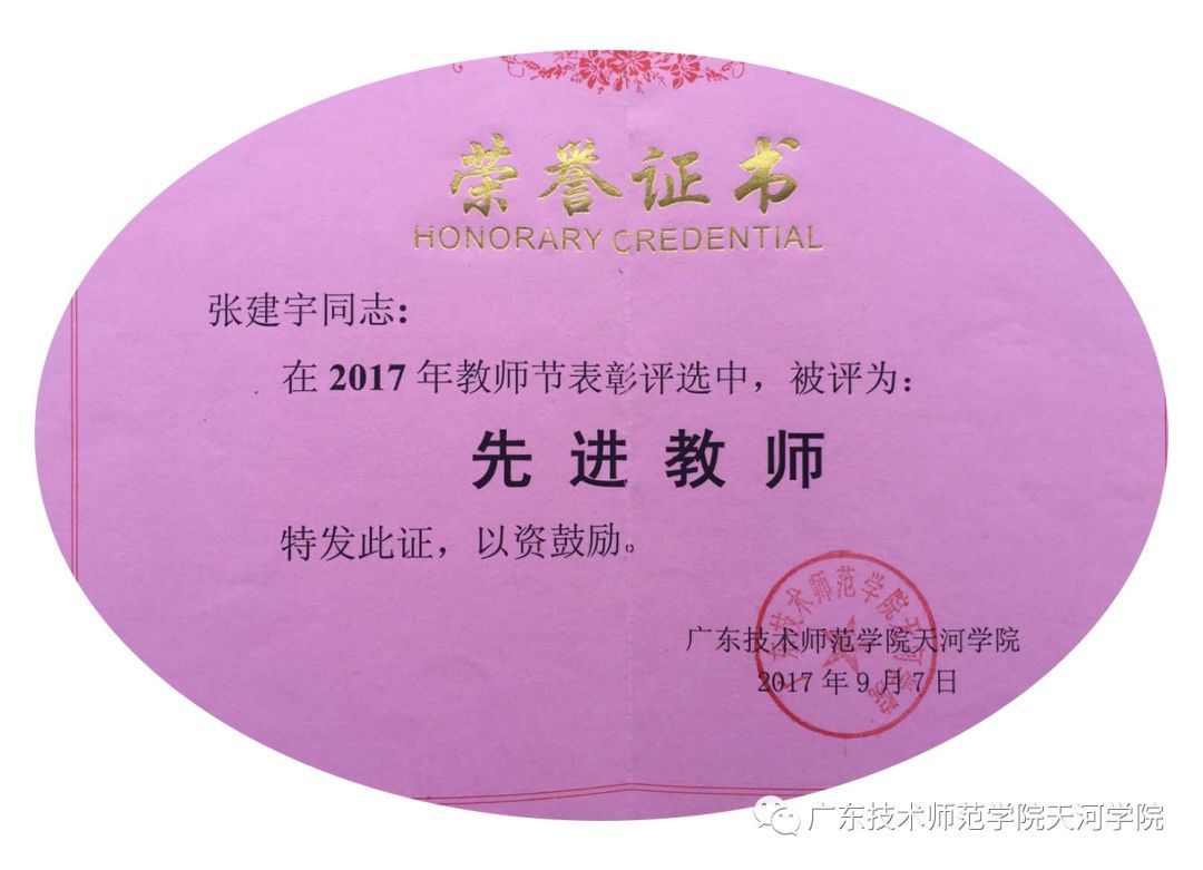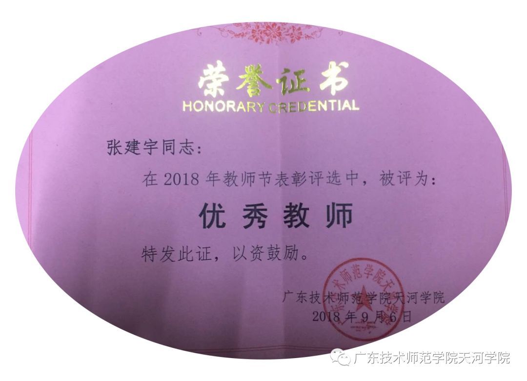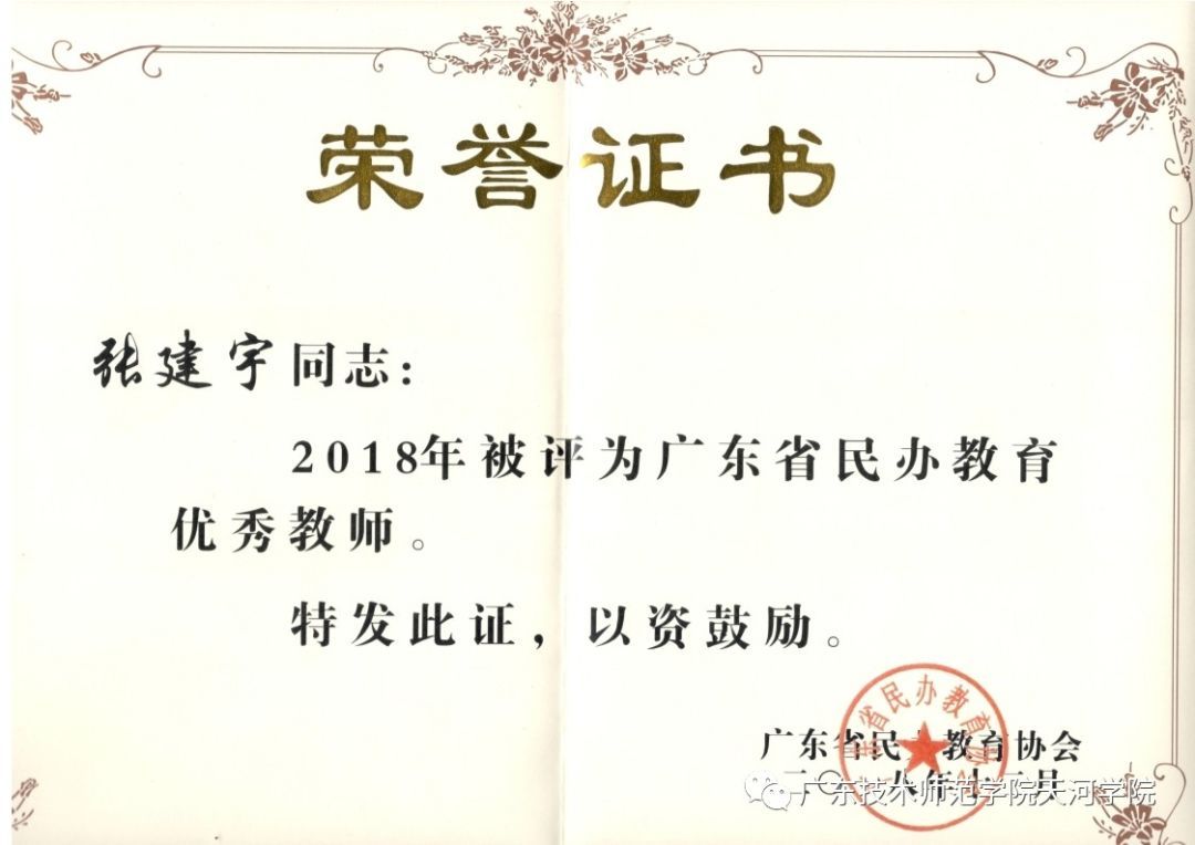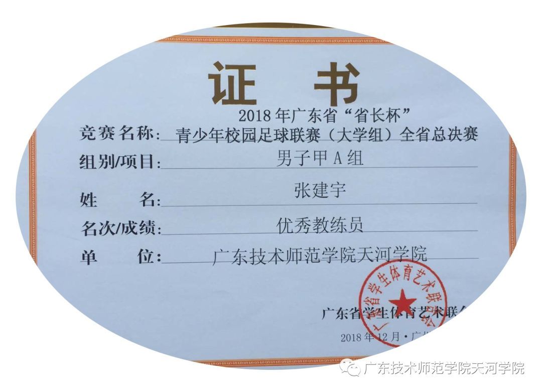 2018年12月,我校足球队教练、体育教研室主任张建宇,被评为“2018年广东省民办教育优秀教师”!