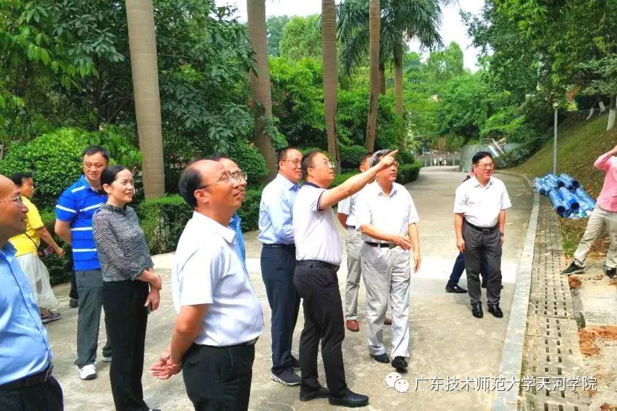 5月1日下午,白云区委书记赵军明、副区长蔡胜一行,走进广东技术师范大学天河学院,调研“八村一居”供水工程进展情况,对学校完成供水工程、接通市政用水表示肯定。
