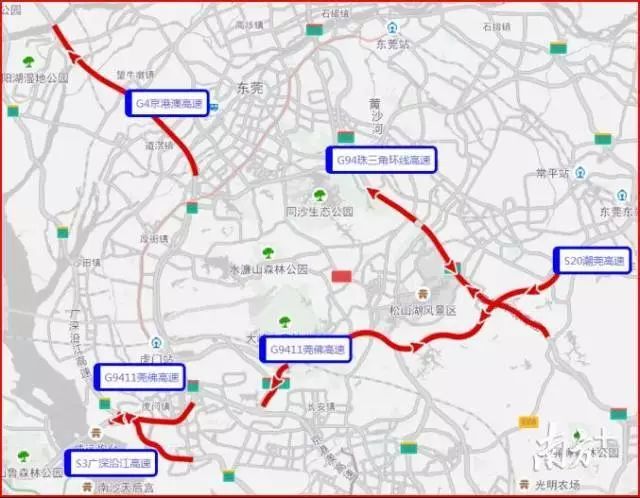 春运返程时,预计2月20日为最高峰,高速拥堵程度最高,易拥堵缓行的高速有G9411莞佛高速、S20潮莞高速、S3广深沿江高速、G4京港澳高速等。