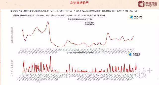高速方面,受春节假期人群出行影响,预计东莞市高速1月26日、1月30日(小年后一天)19时至23时为出程拥堵峰值;春节假期结束后,返程较为分撒,预计元宵后2月20日11时—17时会有一个小高峰,另外,受走亲访友影响,2月6日(正月初二)10时—12时会有一个小高峰。