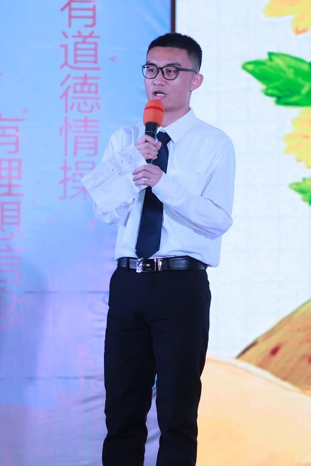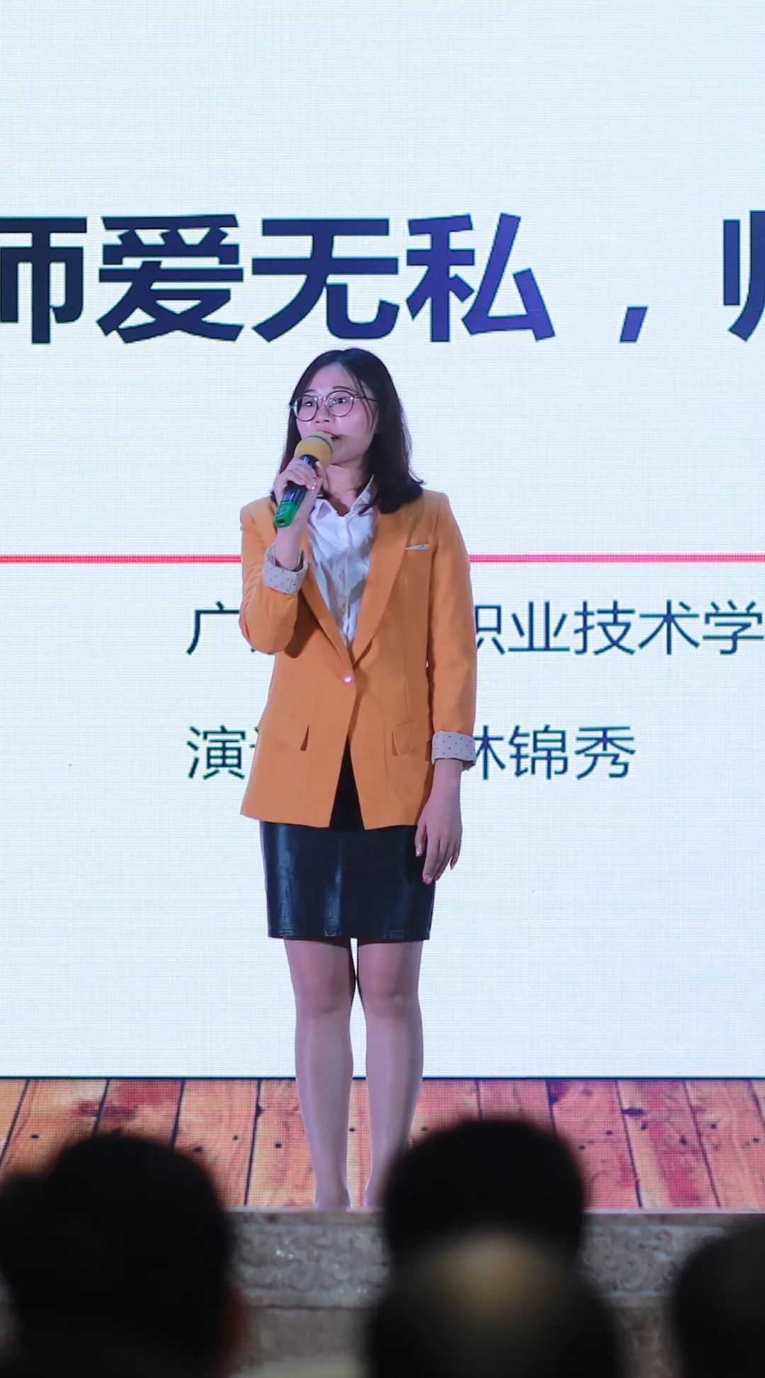 选手们声情并茂,激情四射的在台上用演讲分享师德,台下的精心准备,从讲稿的字斟句酌,到ppt的反复修改,到演讲的精益求精,甚至细致到衣着妆容,用行动在诠释师德。