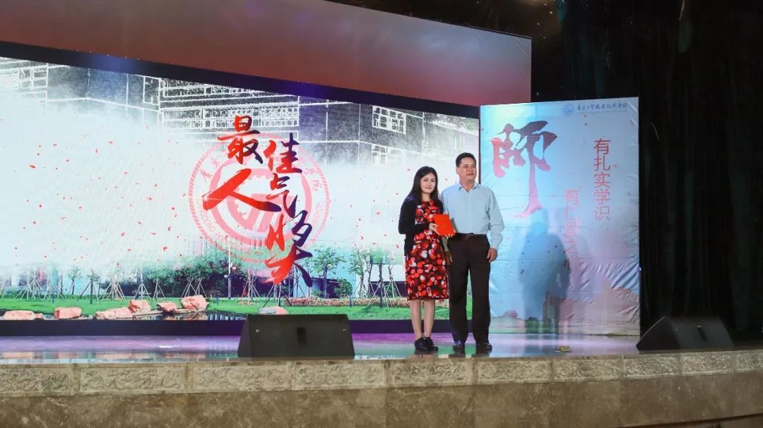为最佳人气奖获得者俞雪娇老师颁奖