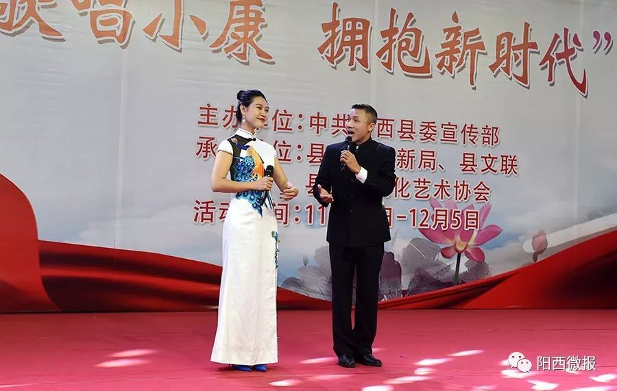 山歌声声颂党恩,唱出国泰和民安。23日晚,由阳西县委宣传部主办,县文广新局、县文联承办的“山歌唱小康·拥抱新时代”文化周展演活动在阳西县文化广场拉开帷幕。活动围绕“中国梦”主题,深入宣传党的十九大精神以及习近平总书记视察广东重要讲话精神,进一步弘扬社会主义核心价值观,推动地方群众文化的繁荣发展。