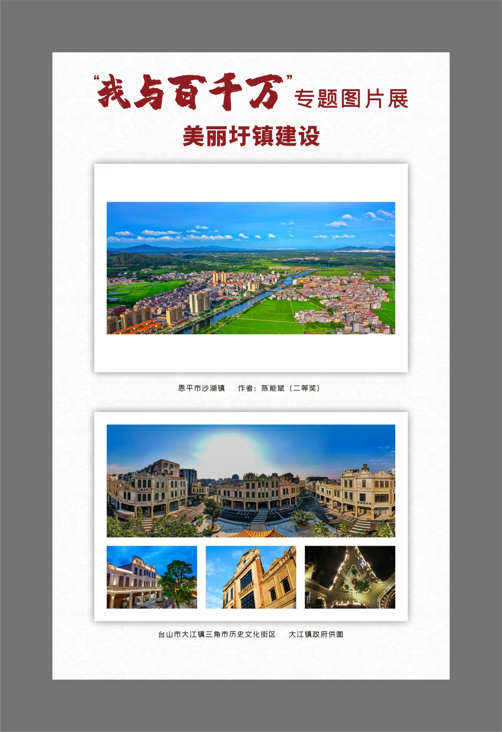 专题图片展是江门加力提速推进“百千万工程”的创新举措,旨在展现江门城乡区域协调发展的新进展,记录侨都大地的区县、街镇、乡村发生的喜人变化;同时,凝聚全社会共识,调动社会各界见证、记录“百千万工程”的积极性和主动性,提高全民参与“百千万工程”的知晓率、参与度,营造上下联动、全民参与的火热氛围。
