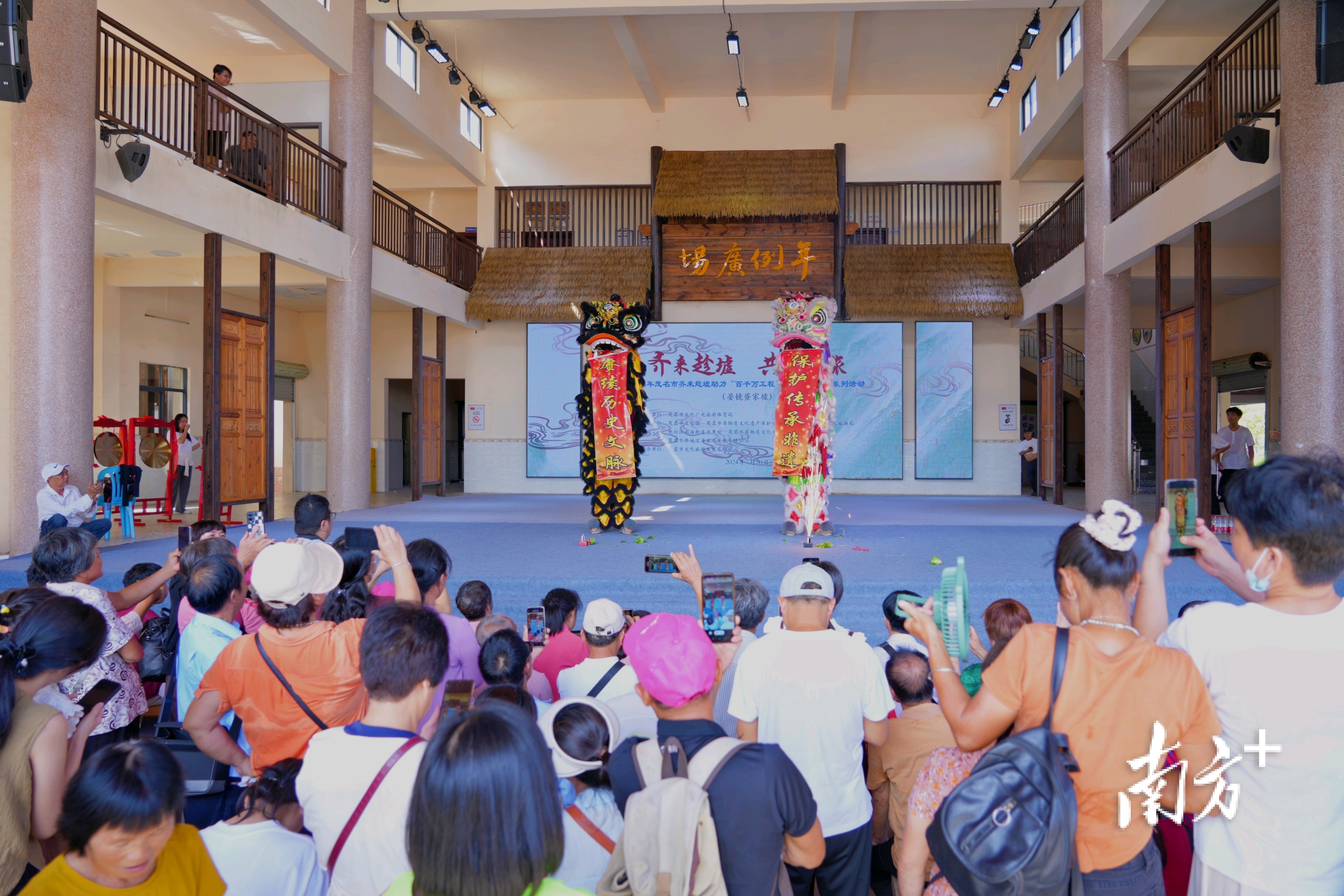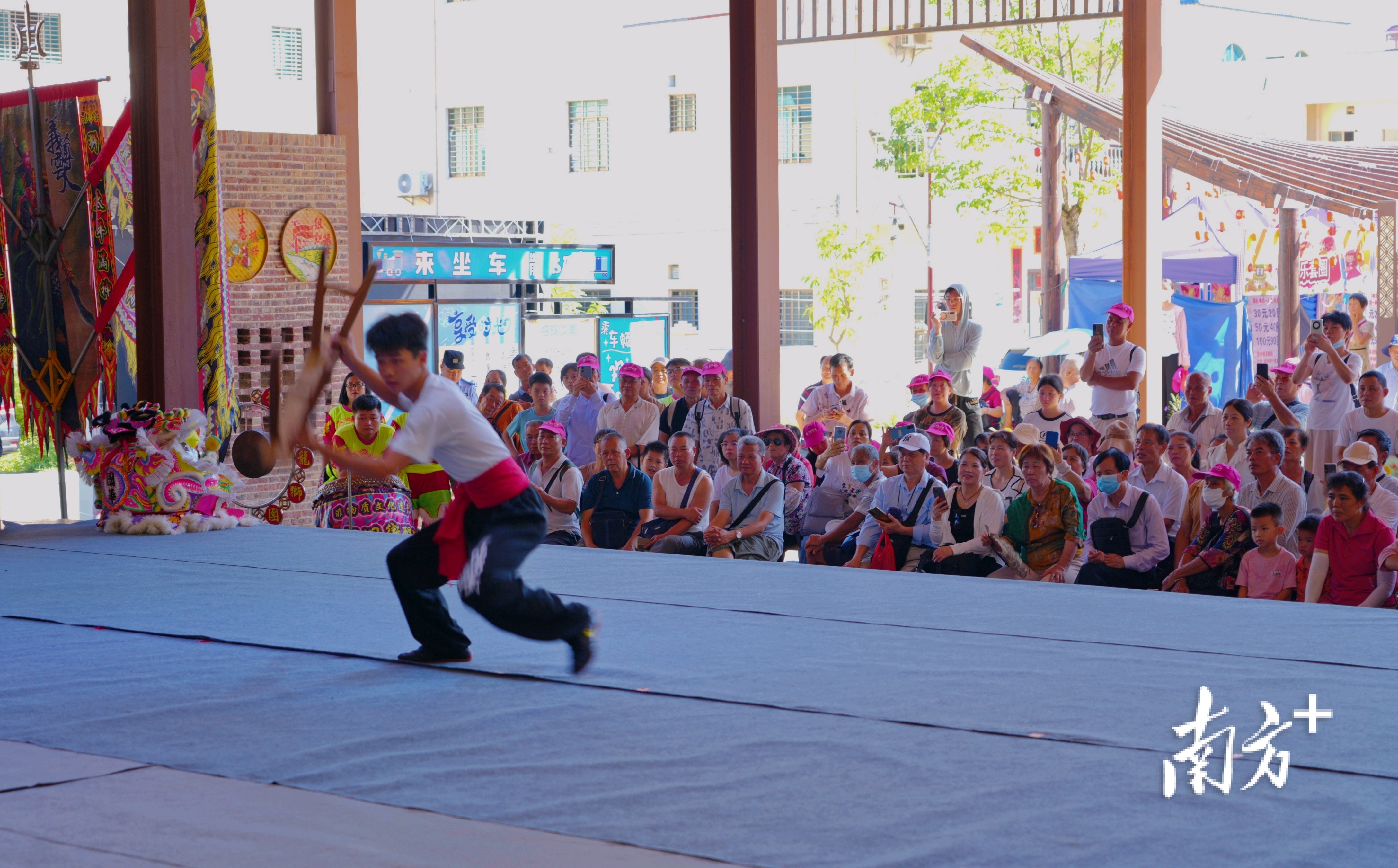 上午9时许,疍家墟前已是人声鼎沸,清晰的锣鼓声如同号角,宣告着活动的开启。只见雄狮在阵阵鼓点中跃然眼前,它金鳞闪烁,目光如炬,或翻滚跳跃,或腾空而起,每一步都踏着节奏,每一次腾跃都激起观众阵阵欢呼。