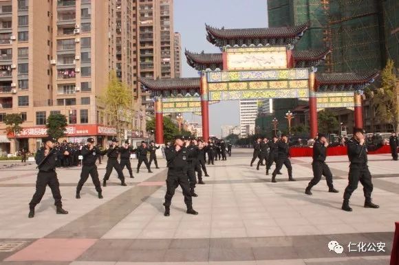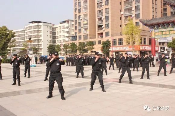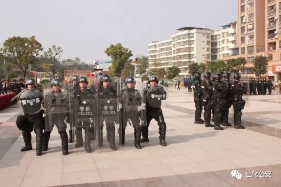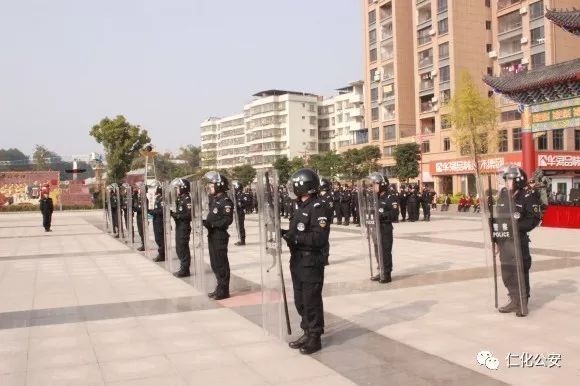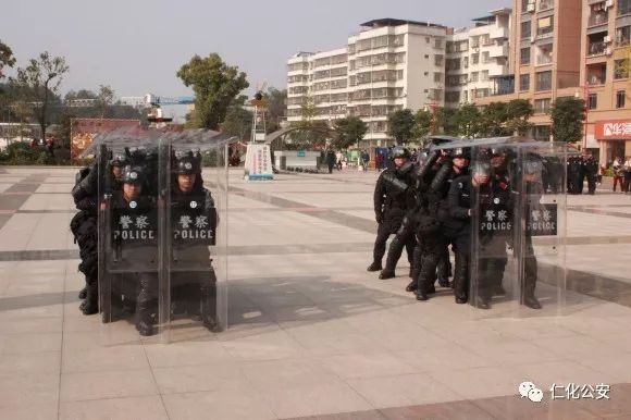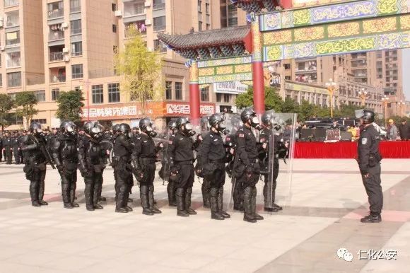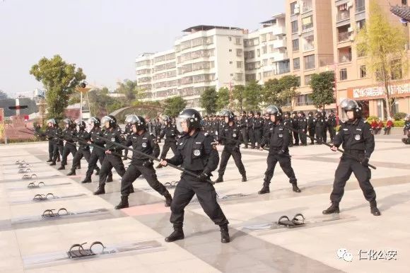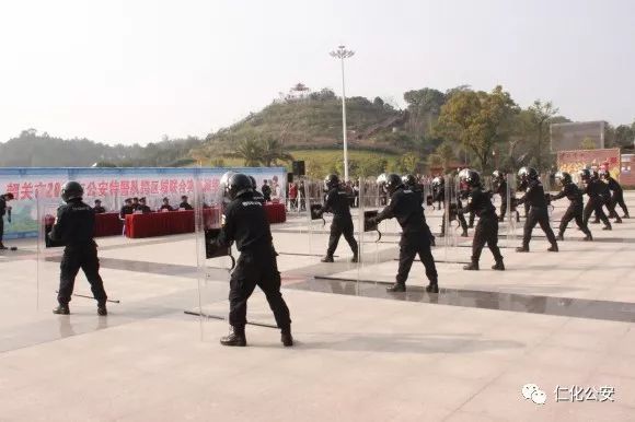 第二个出场的是仁化公安特警代表队,他们演练的是棍盾对抗术,虎虎生威的动作,娴熟有力的招式,充分展现了仁化特警良好的精神风貌和维护社会治安稳定的强大决心。